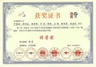 三上悠亚在线 学生科创项目《模拟触感交互控制的助盲系统》获第十八届“挑战杯”全国大学生课外学术科技作品竞赛全国一等奖(在江西省高校所有国赛项目中排第一顺位,主题赛道国奖我校共3项,三上悠亚在线占1项)。被中国教育电视台《全国教育新闻联播》、江西教育电视台《教育新闻》详细报道。