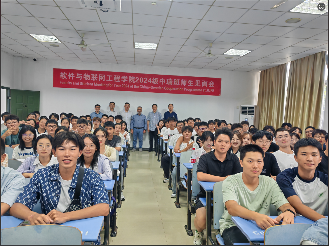 On September 25th at 16:00, School ofSoftware and Internet of Things Engineering of Jiangxi University of Finance and Economics successfully held the 2024 class Software Engineering (Sino-foreign Cooperative Education) teacher-student meeting in Room 1103 of Mai Teaching Building. Vice Dean of the Software College Mao Chengying, Director of the International Software Engineering Department Liu Yanqing, representative teacher Deng Qingshan, project leader William Song, Associate Professor Mingjie Han from Dalarna University in Sweden, Associate Professor Hadan Fleyeh from Dalarna University in Sweden, and all freshmen of the 2024 Software Engineering (Sino-foreign Cooperative Education) major participated in thismeeting.