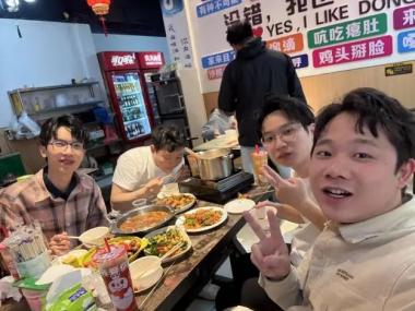 备考期间,寝室化身“资源共享站”,陈毅军用自律高效的复习计划和工整的笔记,成为大家的“时间管理模版”,段雪峰总能精准梳理知识框架,拆解专业课难点,共享政治押题资料;周钰快速筛选考研有效信息,如择校数据、导师论文,是寝室的“信息小能手”;陈彬作为寝室长,在压力如山的备考期间,总能及时关注室友的状态并给予关怀与鼓励。晚间从图书馆归来,四人便会交流学习进度,探讨知识难点,在互相切磋中复盘一天的收获。