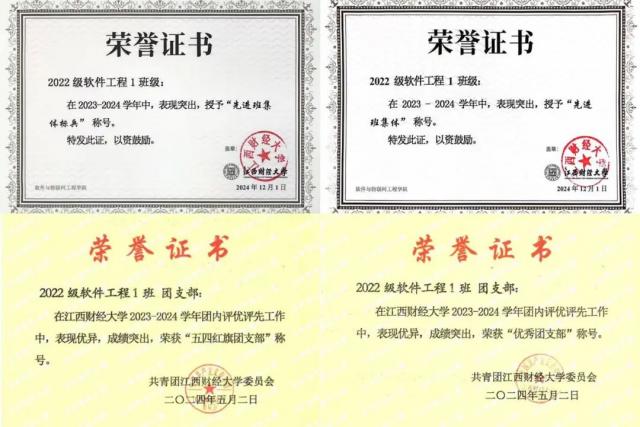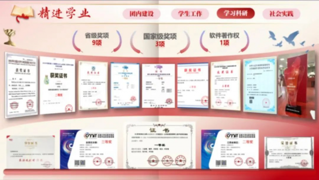 功夫不负有心人,在后续的“优秀团支部” 和 “先进班级” 评选中,她带领团支部荣获 “五四红旗团支部”,班级也荣获了 “先进班级标兵” 等多项荣誉,并连续两年斩获 “映山红百优团支部”“优秀团支部”“五星团支部” 等荣誉。
